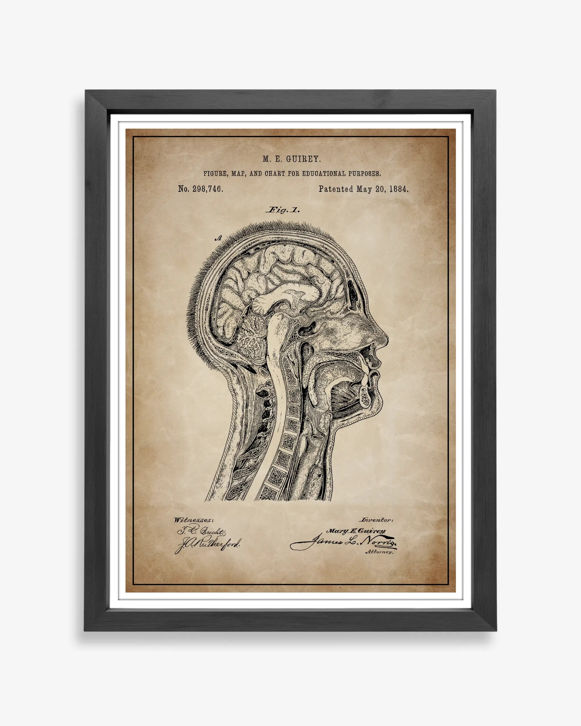As you settle into your workspace, there is a moment when everything feels still. A finely drawn head diagram becomes the quiet anchor of the room. This Anatomical Head Patent Poster captures the structure of the human head with classic precision; bringing a touch of vintage clarity to your walls.