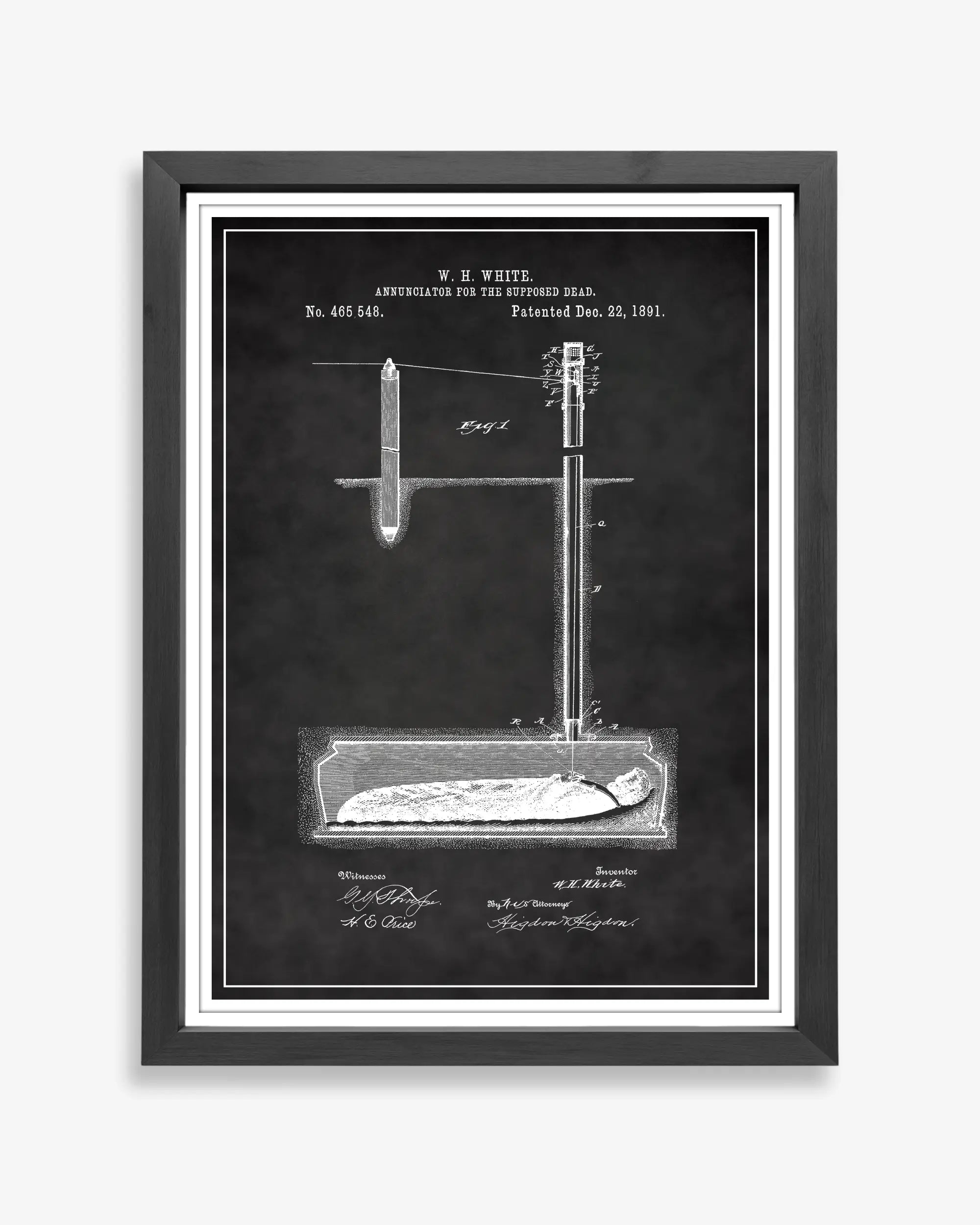 As you pause in a quiet corner of your home, your eyes may drift toward this unusual and fascinating Annunciator for the Dead Patent Poster. The restored illustration highlights the curious mechanics of a device once designed to offer reassurance during an era filled with uncertainty. Its vintage detailing and delicate ink work create a captivating moment of reflection.