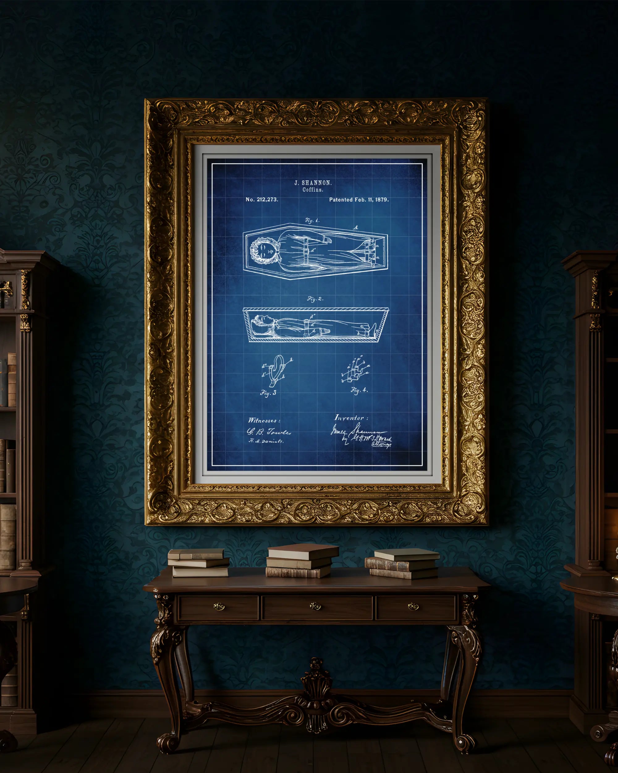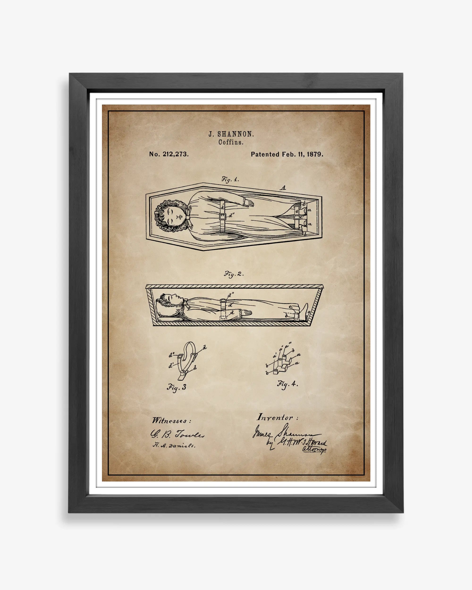 A coffin design patented in the United States during the late nineteenth century, developed amid changing funerary customs and materials. Recorded in patent filings concerned with enclosure, transport, and the presentation of the dead.