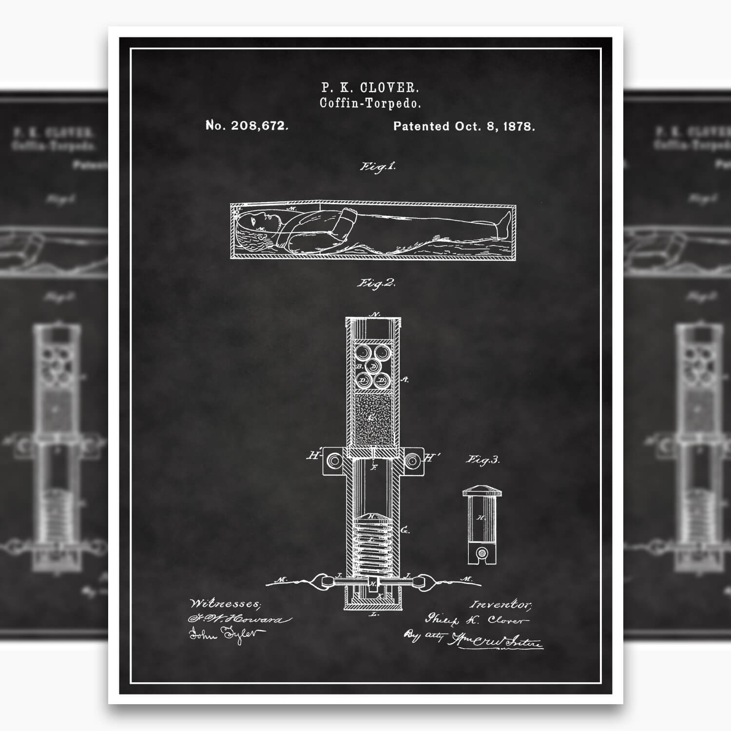 Introducing our Corpse Torpedo Patent Poster, featuring the original patent blueprint by inventor P K Clover. With attention to detail and captivating design, this patent poster is a remarkable centerpiece for horror enthusiasts, collectors, and macabre lovers. Showcase your admiration for everything spooky with the Corpse Torpedo Patent Poster, beautifully rendered on 260 GSM Semi-Gloss Photo Paper.