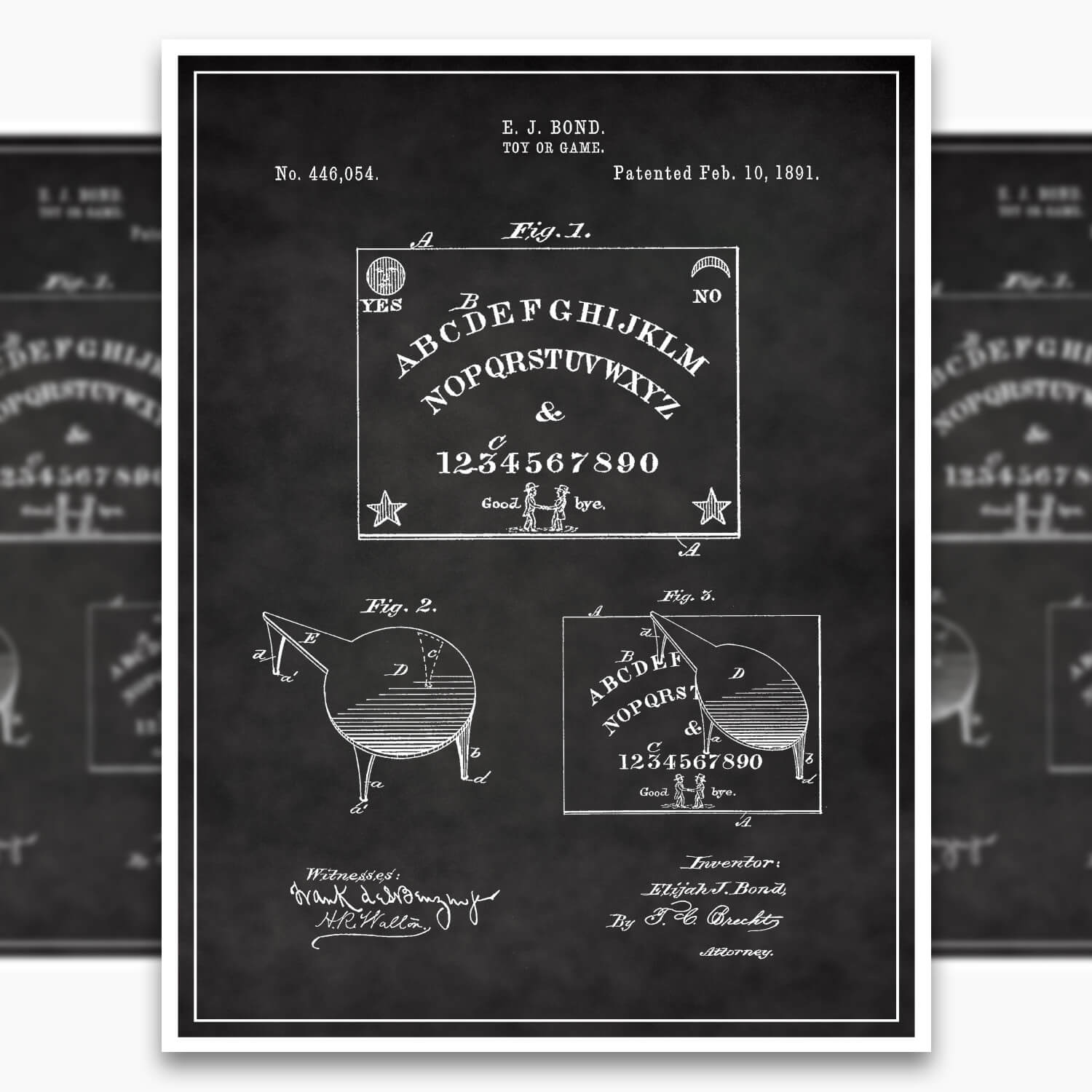 Introducing our Ouija Board Patent Poster, featuring the original patent blueprint by inventor E J Bond. With attention to detail and captivating design, this patent poster is a remarkable centerpiece for spooky enthusiasts, collectors, and board game lovers. Showcase your admiration for all things horror with the Ouija Board Patent Poster, beautifully rendered on 260 GSM Semi-Gloss Photo Paper.