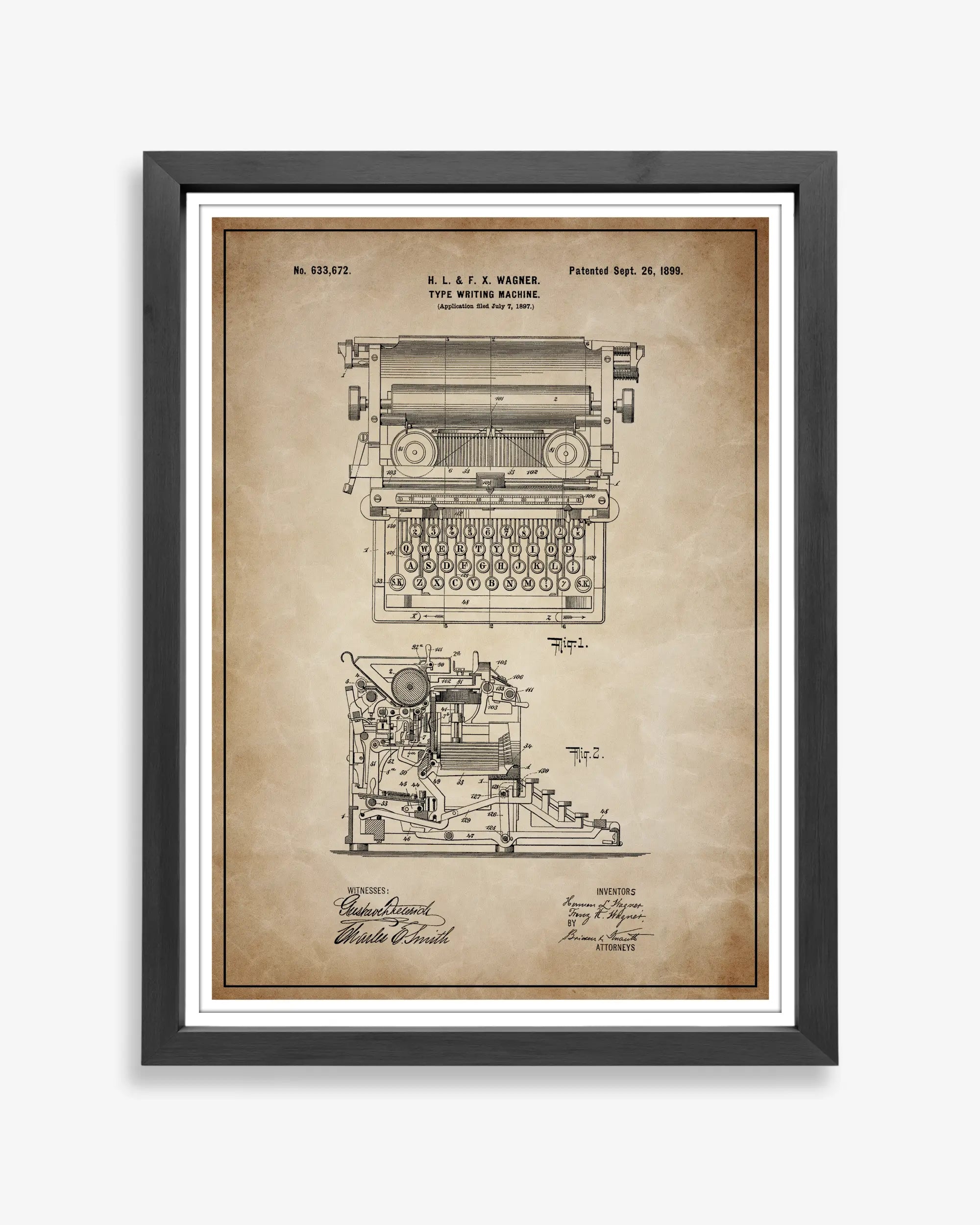 A mechanical writing machine patented in the United States during the late nineteenth century, developed to standardize written communication. Recorded in patent documentation detailing key action, alignment, and repeatable text.